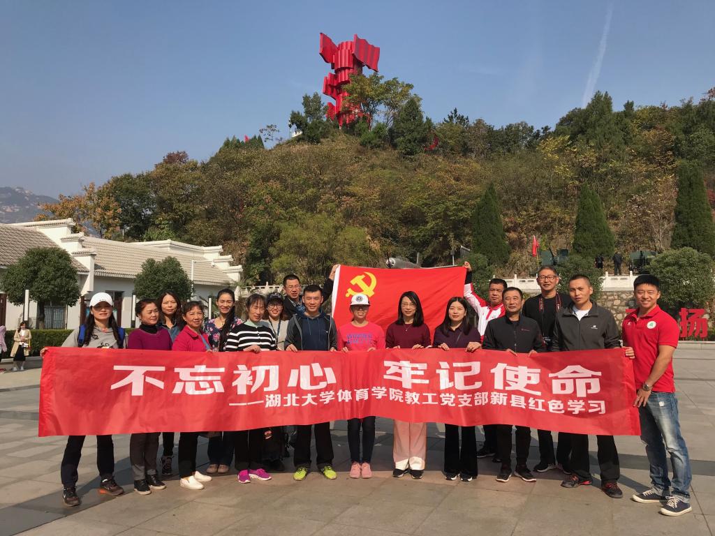 11月9日10日学院体育教育系教工党支部联合行政后勤党支部及运动人体科学教工党支部河南新县开展“不忘初心、牢记使命”主题教育“四重四亮”主题党日活动旨在缅怀革命先烈,学习革命精神,传承红色基因坚守初心勇担使命。