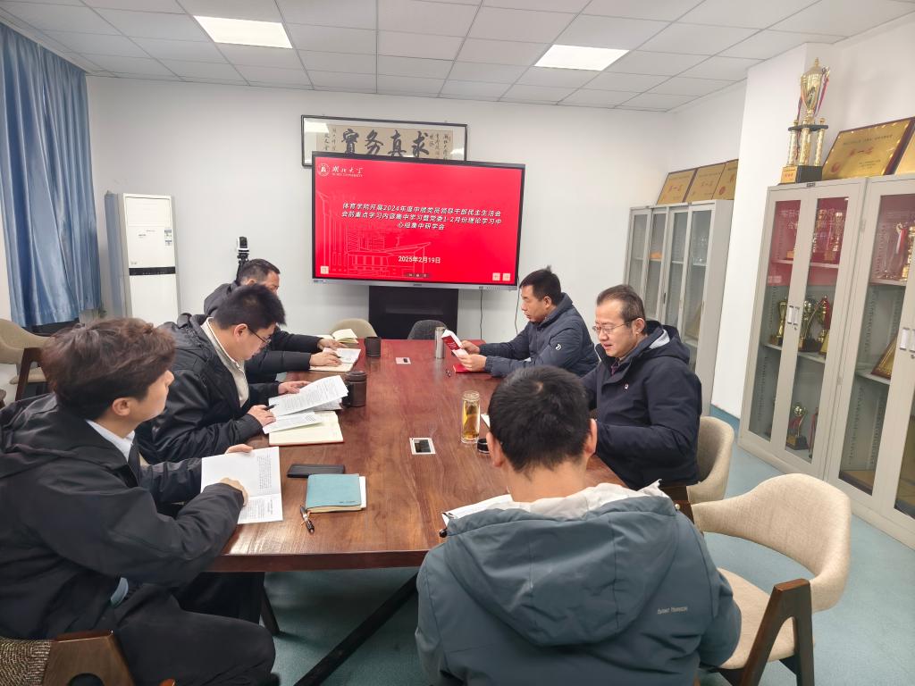 院领导张春合、肖朋、张强弓、史文文和付群分别领学中共中央政治局分析研究2025年经济工作会议、《中国共产党章程》第七章“党的纪律”、习近平总书记在二十届中央纪委四次全会上的重要讲话、第二十八次全国高校党的建设工作会议精神以及湖北省委十二届八次、九次全会公报等重要内容,并紧密结合思想和工作实际,交流了学习体会。