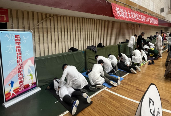 秉承着“助力全民健身,点亮健康中国”的服务理念,运动人体科学专业的志愿者在赛场边贴心设立了一个志愿服务站,充分发挥专业特色,全程为老师们提供服务。赛前,免费提供肌肉贴、冰袋、绑带等运动辅助装备,并义务进行赛前运动按摩服务;赛中,对参赛老师出现的肌肉僵硬、关节酸痛、四肢乏力等状况进行调节按摩,促进功能的恢复和提高;赛后,提供恢复按摩服务,帮助老师们消除疲劳,恢复体力,以更好的状态投身到接下来的工作和生活当中。