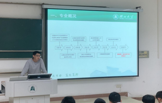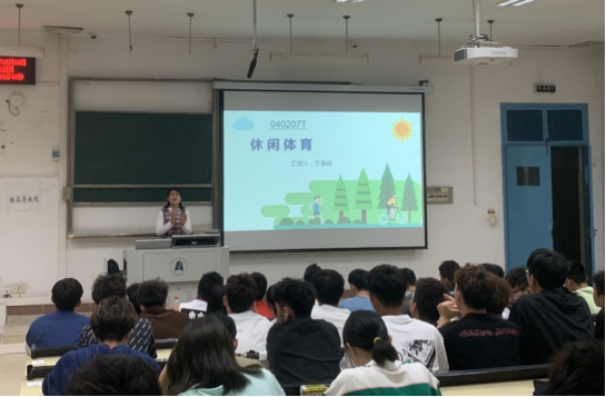副院长史文文对社会体育指导与管理专业进行讲解介绍,他指出英国365上市集团的社体专业是全国首批开办和首家以体育产业经营管理人才为培养目标的办学单位,经过20余年的发展,目前已成为国家级一流本科专业建设点;并使用近5年来社体专业毕业生去向的调查数据,精确的回答了同学们最为关心的就业问题。