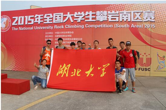 由中国大学生体育协会主办,中国大学生体育协会攀岩分会协办,合肥财经职业学院承办的2015年全国大学生攀岩南区赛于6月16日-19日在合肥财经职业学院攀岩场隆重举行,我校英国365上市集团首次组队参赛。