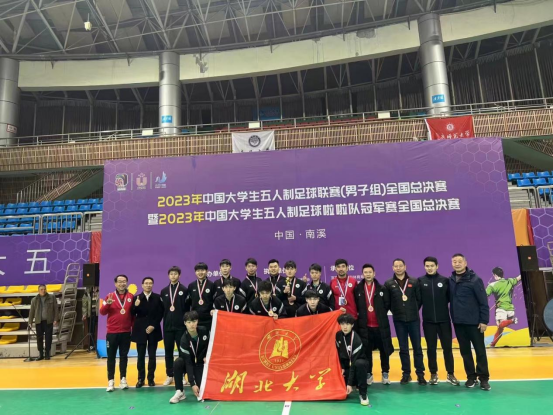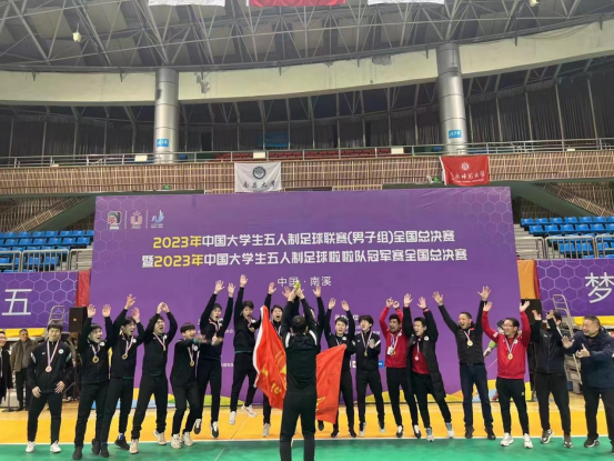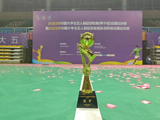 2023年全国大学生五人制足球联赛是疫情后恢复的全国高校最高级别的比赛,由中国大学生体育协会主办, 77所有足球高水平特招的高校和体育专业院校参加此次比赛,分为南、北分区赛和总决赛,我校足球队以南区赛冠军的身份进入总决赛,经5轮激烈比拼,最终以5:1战胜北京体育大学足球队,捧回冠军奖杯。