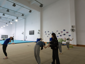 前不久我院师生利用早锻炼时间积极筹备建校90周年素质汇报演出的相关节目,例如体育教育艺术体操专项班设计编排的节目——《灯火》。体操馆内艺体姑娘们笑容灿烂、举止优雅的背后,是张璇老师时刻提醒着她们注意动作细节的成果。刚刚随队取得省级集体爵士第一名的20级艺术体操王芊表示,“出早操,既锻炼了我们的身体,又磨炼了我们的意志。同时,每天早上多出一小时的训练时间,使得我们的协调性和柔韧性好了不少,也正是每天早上的辛勤付出,我们才能取得骄人的成绩,呈现完美的《灯火》节目。”