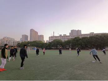 早晨太阳还未升起,师生们就已经活跃于各自场地,响亮的声音从四面八方传来,矫健的身姿成为校园里一道靓丽的风景线。
