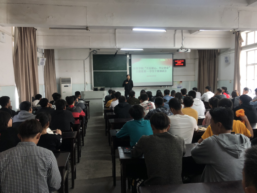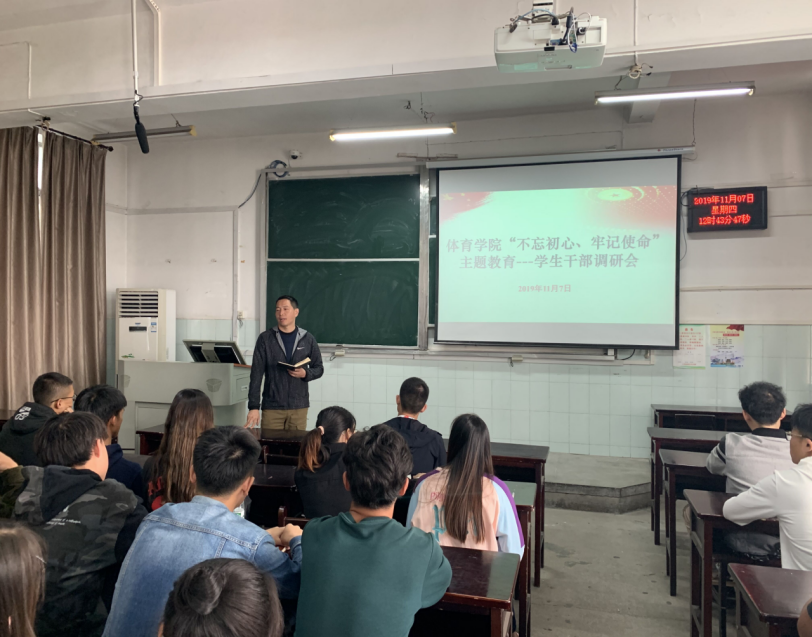 11月7日中午,学院在教五201开展“不忘初心、牢记使命”主题教育学生干部调研会。英国365上市集团党委副书记张强弓、辅导员姚凯彬、2017级至2019级院团委、院志协、学生会骨干成员参加会议,会议由辅导员程成主持。