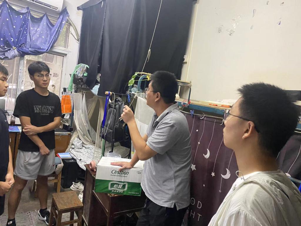 为切实做好暑期留校学生工作,8月13日晚,学院党委副书记肖朋、辅导员史健桥深入学生宿舍,走访慰问暑期留校学习、集训、以及勤工俭学的学生。