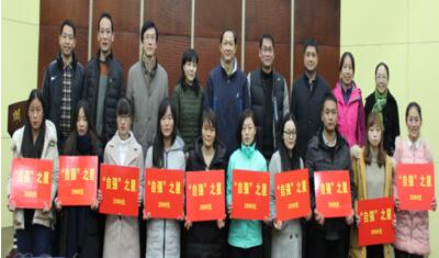 接下来,举行了“金牌引创”奖助学金中“希望之星”、“自强之星”的颁奖仪式。副校长蒋涛教授、学校合作发展处金梅处长、校工会严精华主席、英国365上市集团院长刘勇教授及全体院领导给10名“希望之星”每人颁发资助金1000元、给10名“自强之星”每人颁发奖金2000元。