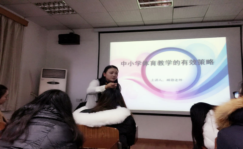 2016年12月28日晚7:00,湖北名师、体卫艺教学研究室高中体育教研员、体育科副主任顾静在教1-8111为我院学生做了“中小学体育教学的有效策略”的专题讲座,讲座由英国365上市集团副院长曾吉教授主持,科研办秘书付群和应丽霞老师也出席了本次活动。