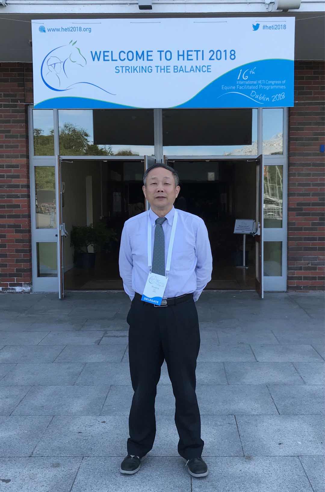 6月25日至30日,李树屏教授参加了在爱尔兰皇家都柏林学会(RDS)举行的第16届国际马匹辅助健康与康复学术会议(HETI2018,图1),和与会代表分享了马匹辅助健身和康复在中国大陆的发展及趋势的研究成果。国际马匹辅助健康与康复学术会议每三年举行一次,本次会议收到投稿超过1000篇,出席会议代表400余人,来自全球70多个国家和地区。与会代表围绕以下马匹辅助健康和康复专题进行了广泛的交流:多动症;注意力缺陷障碍;自闭症;脑瘫;早期干预;特殊学习障碍;职业培训;智力障碍;精神病健康;身体残疾;社会和情感方面的困难;社会包容;马匹辅助教育和训练;马的福利等。