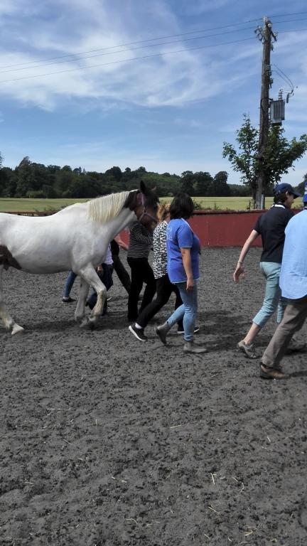 除了会议交流之外,李树屏教授还前往爱尔兰顶级的Festina Lente马术中心参加了限额报名由学会组织的为时一天的马匹辅助健身和康复的教学和训练。在动物心理理疗师、马匹辅助学习专业博士和马匹健康与康复运动教练的指导下,观摩和学习了马匹辅助健身和康复的三个核心内容:马匹辅助学习原理与实践、心理教育与马背娱乐体操、以及维护马匹背部健康的科学与实践。实地体验了马匹辅助健身和康复的过程和方法。