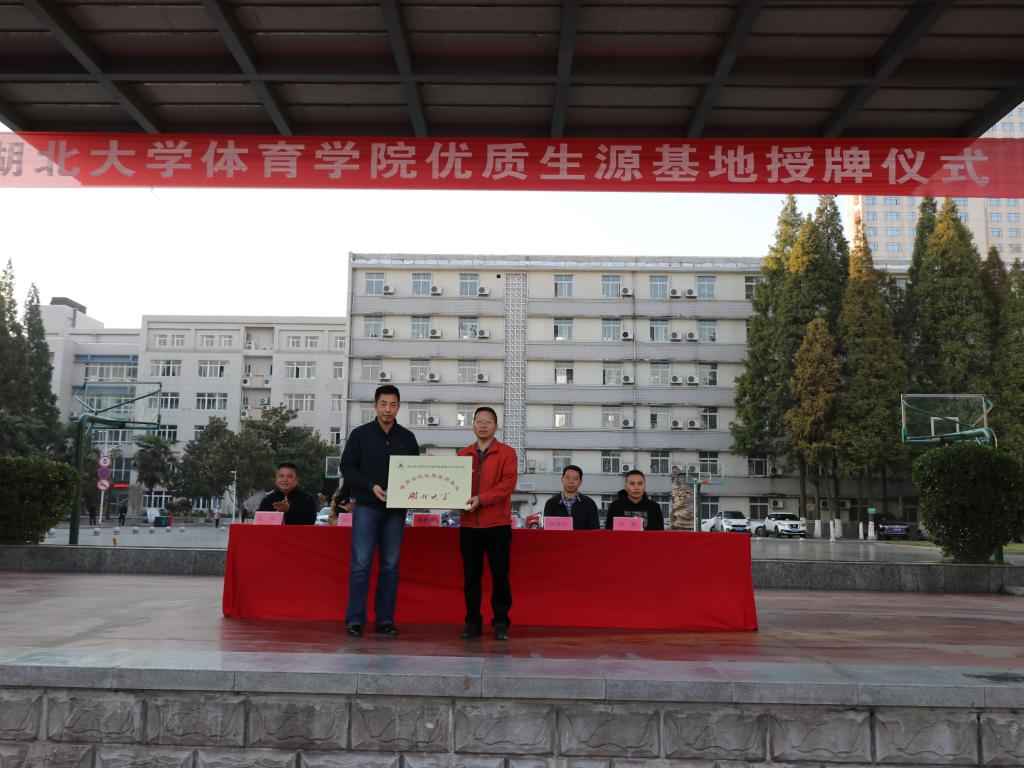 襄阳二十四中许祖祥校长对我院领导一行表示热烈的欢迎,分管体育的副校长江华向我院领导介绍了二十四中的办学特点和育人理念,以及在体育人才培养方面的特色经验和取得的骄人成绩。张春合院长对二十四中在为高校输送高水平的体育专业人才方面的做法给予了充分的肯定,对该校多年来为英国365上市集团输送了一批又一批优质生源表示衷心的感谢,对该校接纳我院体教专业的学生开展专业实习并认真指导给予了高度的赞赏。他表示,优质生源基地的建设不仅为两校的可持续发展搭建了沟通新平台,而且有利于双方进一步深化教育教学改革、优化资源,解决体育生的输出和输入问题,实现院校之间发展的良性循环,达到双赢。随后,张春合院长为二十四中授予“优质生源基地” 牌匾。