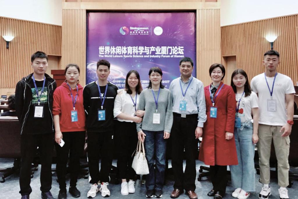 2018年11月15日-18日,由世界休闲体育协会、厦门市思明区人民政府主办,厦门体博会电竞展组委会、厦门市思明区文化体育出版局、厦门动天下展览有限公司承办的世界休闲体育科学与产业厦门论坛在厦门市国际会展中心隆重召开。我院教师刘勇教授、代方梅副教授、方春妮博士带领2016级和2017级研究生共12人参加了此次会议并作专题报告交流。