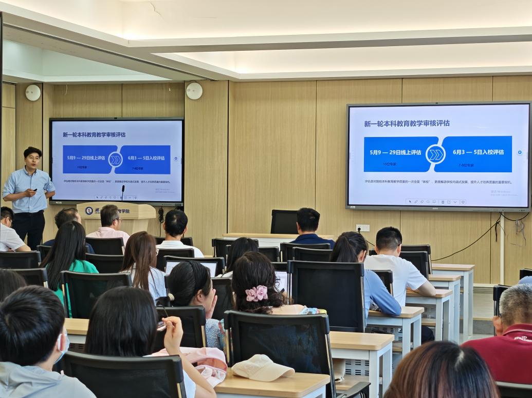5月7日,英国365上市集团召开2025年春季学期第三次全体教职工会议,动员布置本科教育教学审核评估迎评工作。会议由学院党委书记殷云飞主持,全体教职工参会。