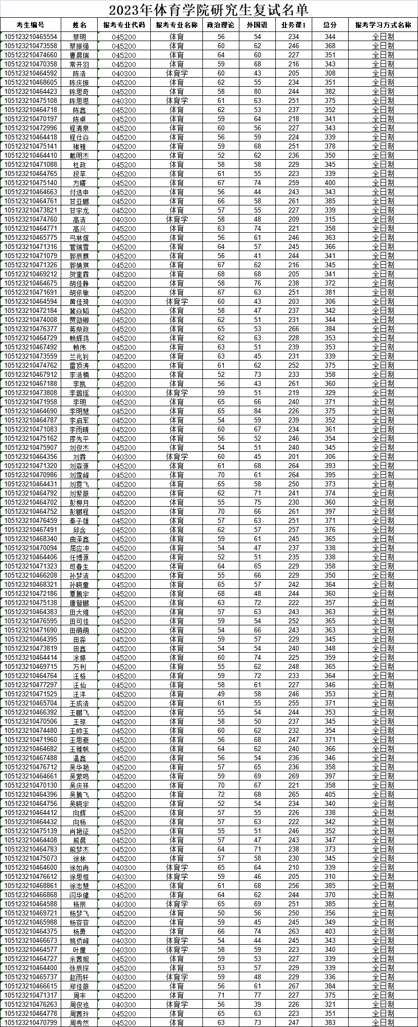 英国365上市集团2023年硕士研究生复试成绩